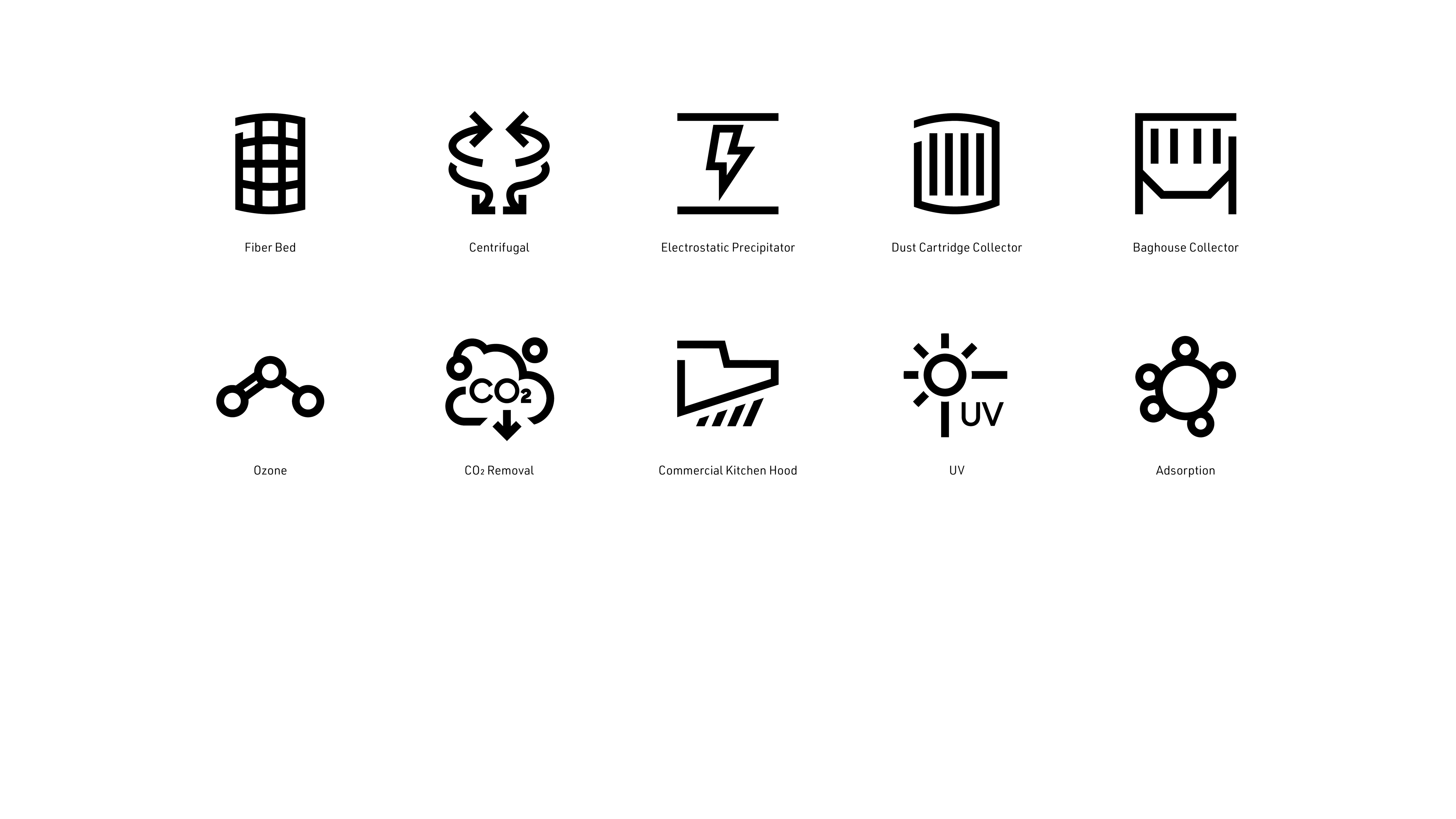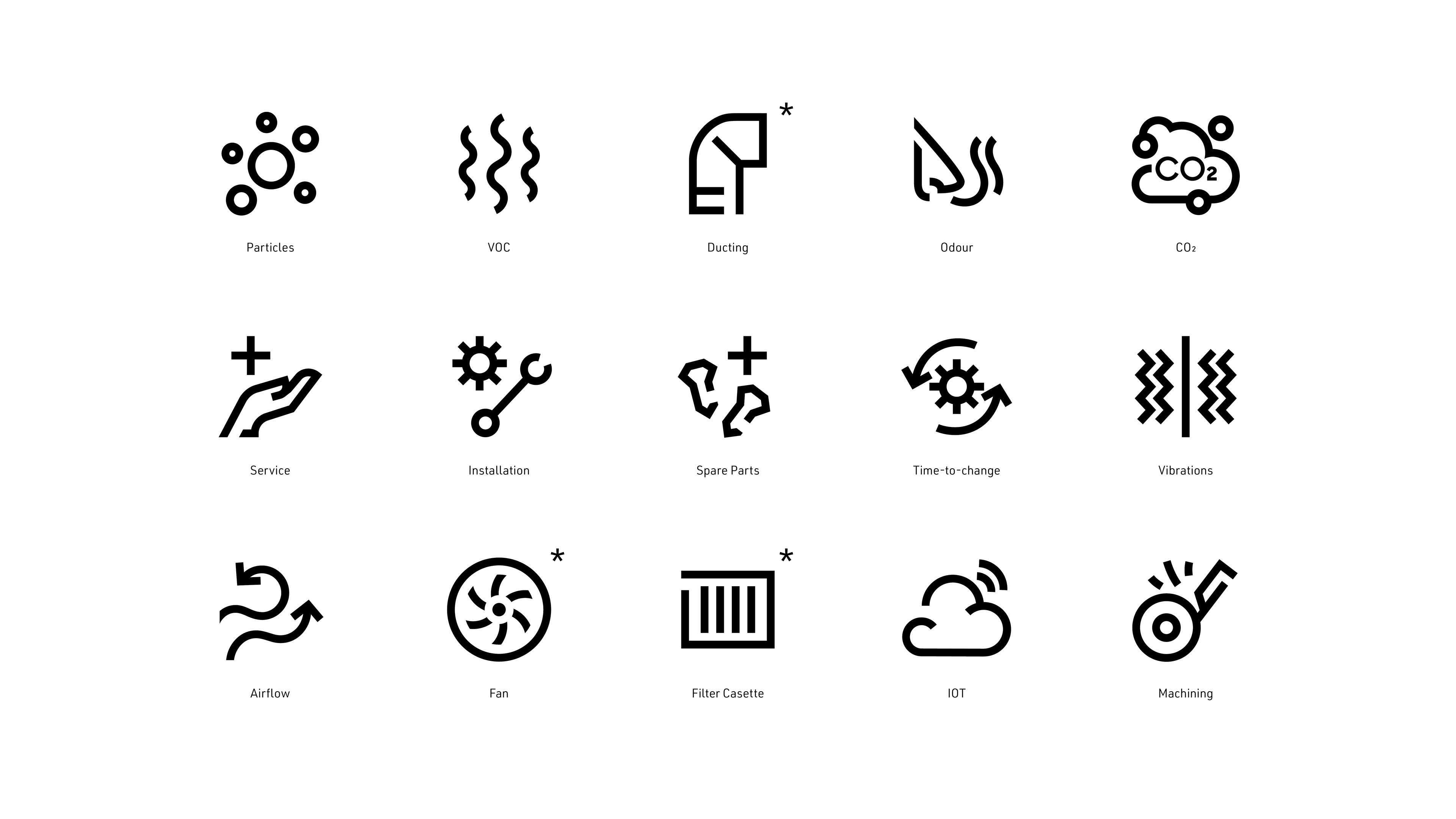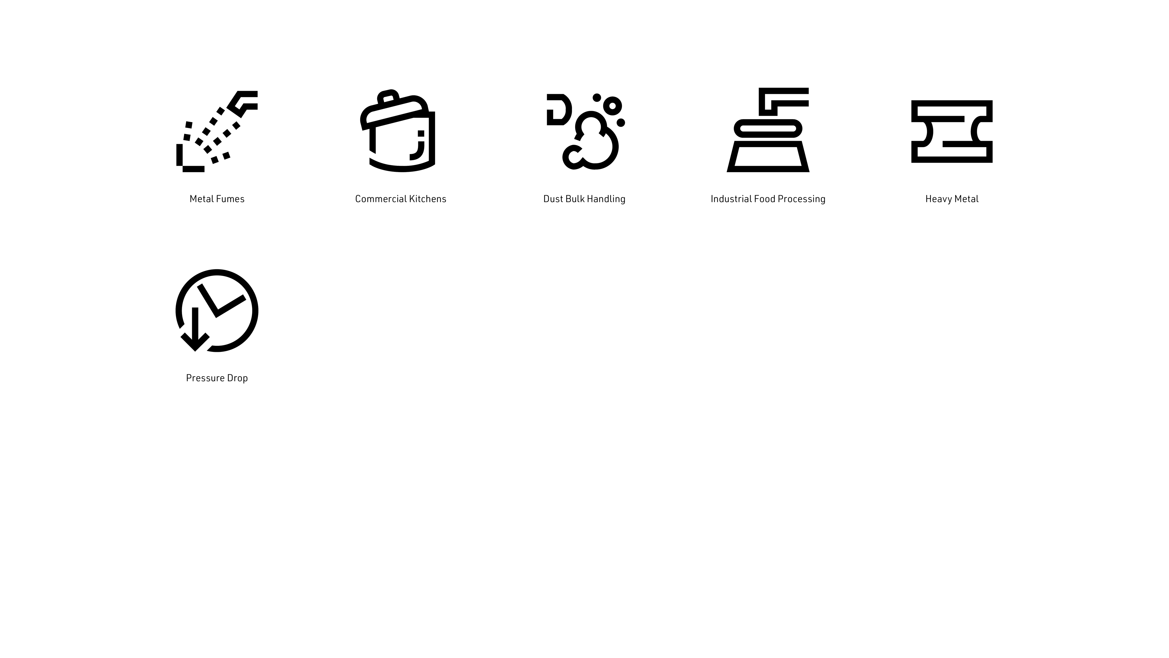 A certain visual correlation was implemented for pictograms that needed to indicate a relation to each other. This group all fall under the category of pollutants and therefore required a level of similarity to one another. The Oil Mist and Oil Smoke show an even closer relationship and highlight the technical difference between them, which has a high relevancy to this industry.