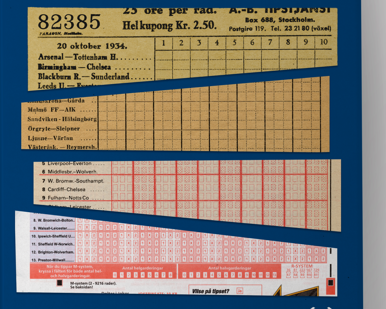 By highlighting betting coupons from different periods in Stryktipset’s history we evoke a nostalgic feeling in those who have fond memories associated with them and also hint to the biographical nature of the book.